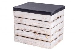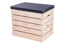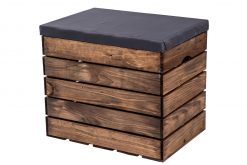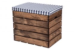 Sitzkiste „Sissi“ dunkel gebeizt / blau-wei? karierte Auflage